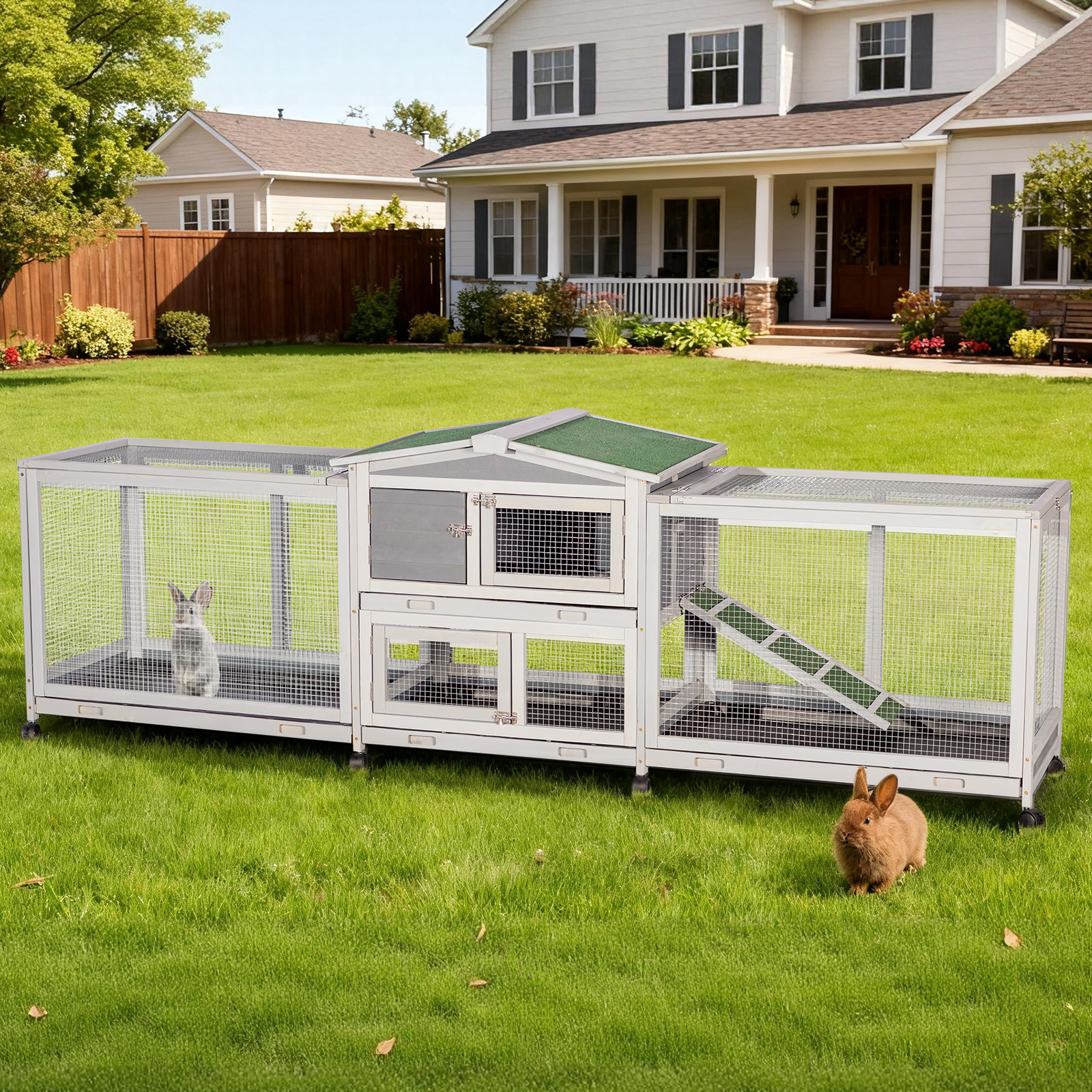 Give your pets a spacious, secure, and easy-to-maintain home with this 94.5-inch outdoor rabbit hutch, designed for rabbits, chickens, guinea...