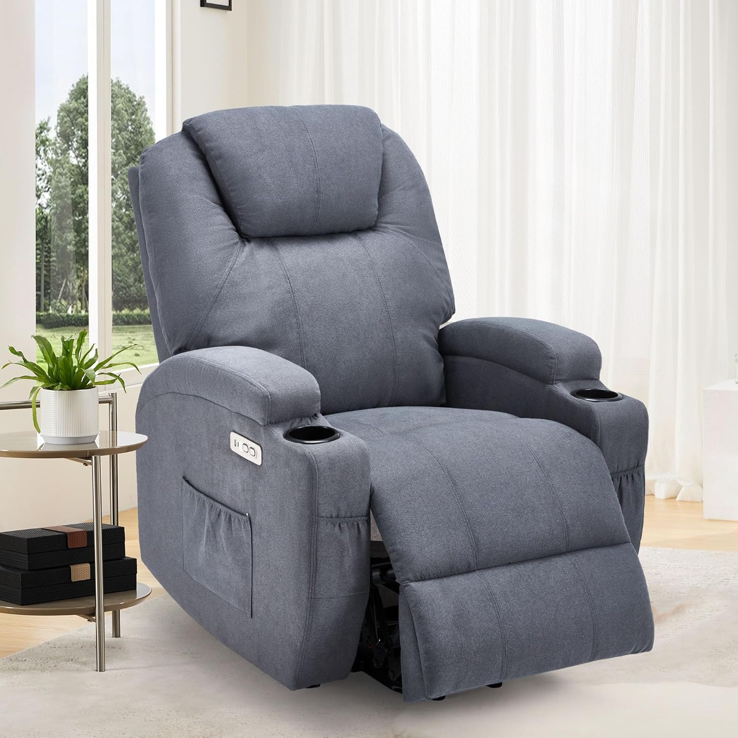This power recliner chair features 8 vibration massage points with 5 adjustable modes and a soothing lumbar heating function. The...