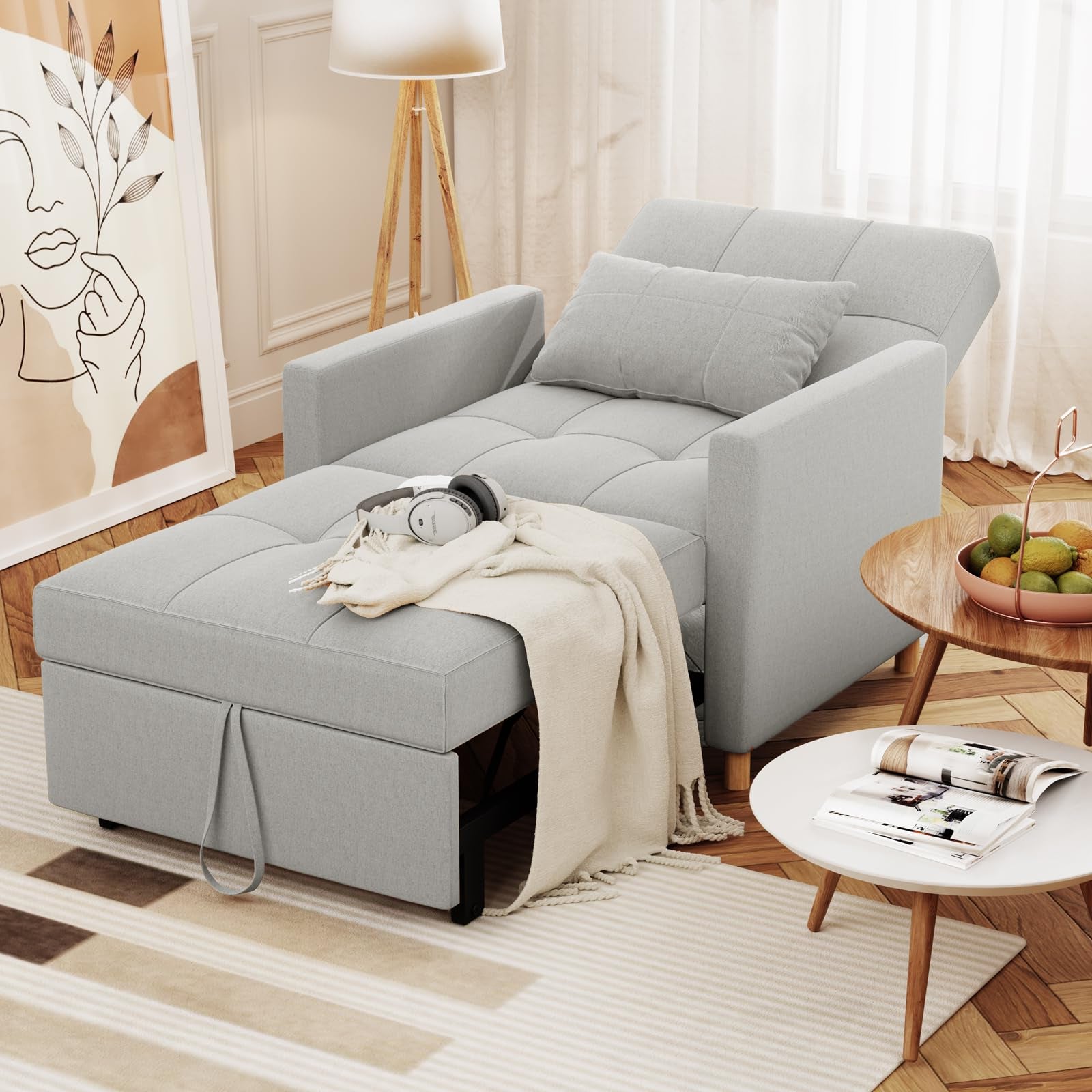 YODOLLA Sleeper Chair, 3-1 Convertible Chair Bed Pull Out Single Sofa Bed, Modern Grey