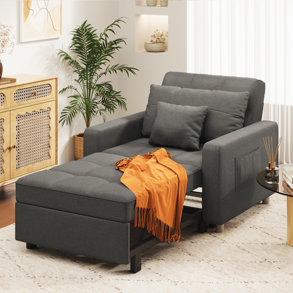 YODOLLA Sleeper Chair, 3-1 Convertible Chair Bed Pull Out Single Sofa Bed, Modern Grey