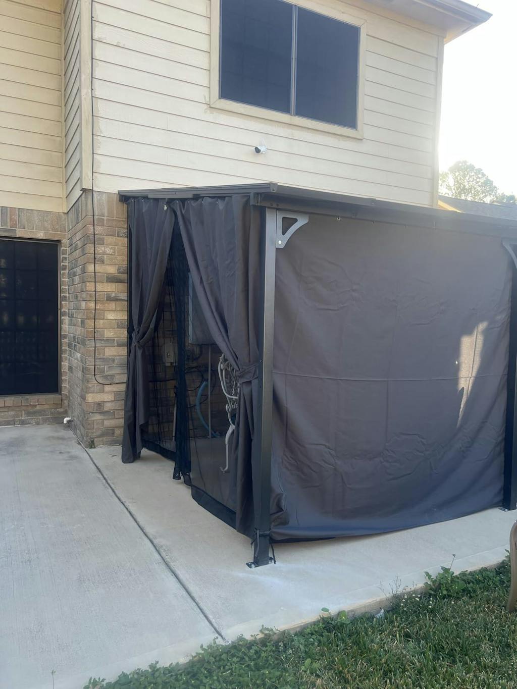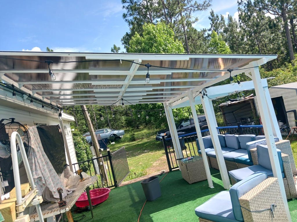 This lean to gazebo transformed my boring patio.The white look is timeless,and the hard top adds so much function.