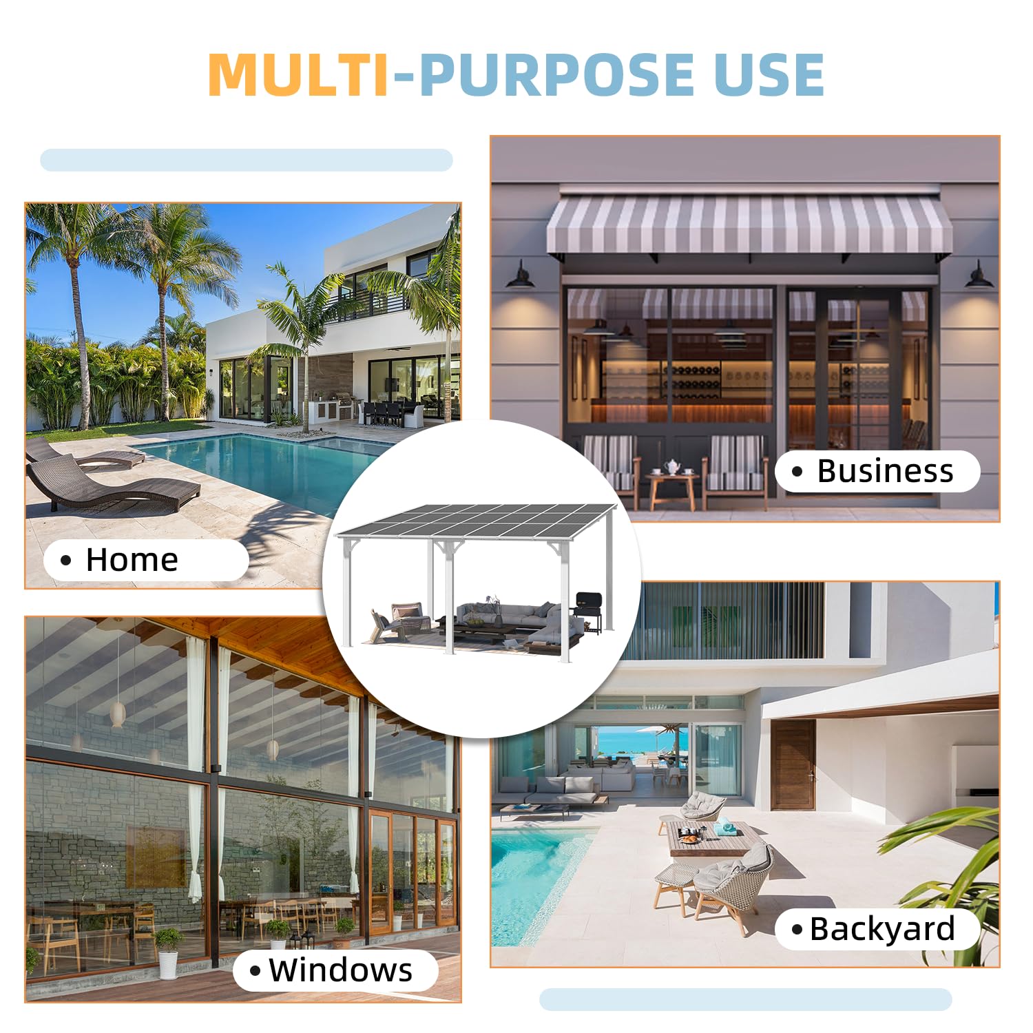 • Comprehensive Protection: The awning roof of the pergola covers an area of 112 Sq.Ft., providing protection against harmful UV rays and rainwater.