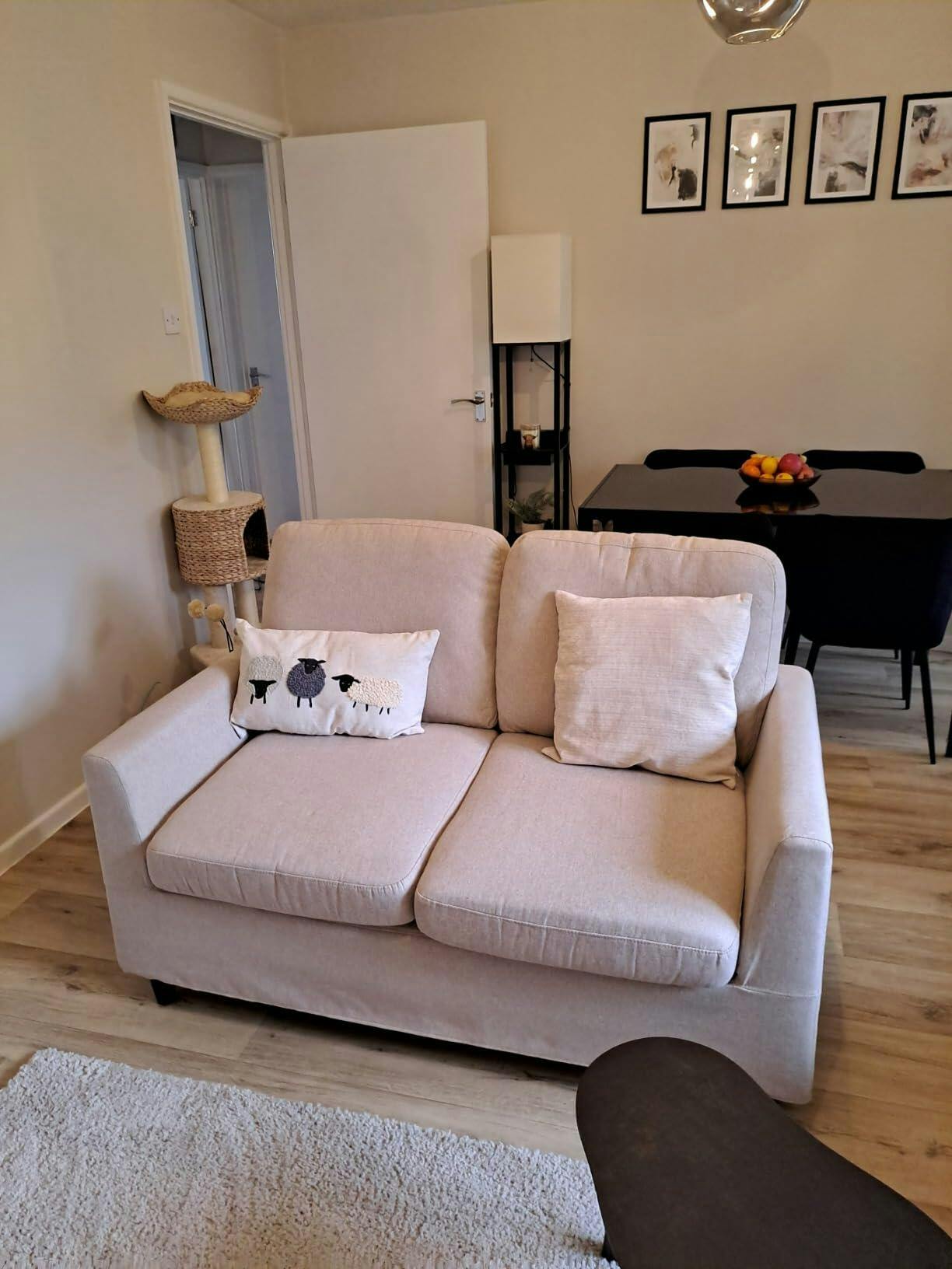 This 2 seater sofa's removable cover is a game changer.It throws in the washer easily,and the fabric stays soft after washes.My couch always looks fresh.