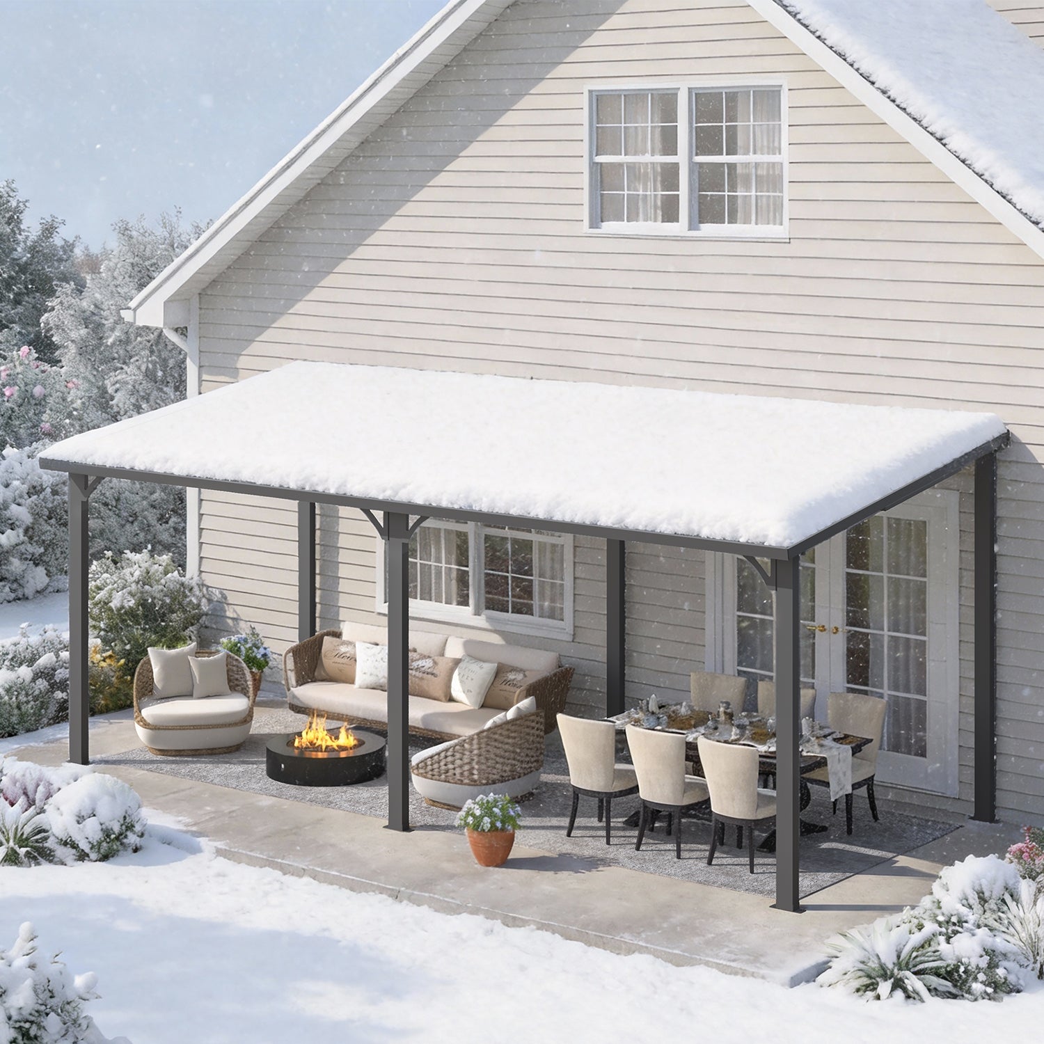 This heavy-duty hardtop gazebo is engineered to withstand 80 MPH winds and 20 inches of snow. Crafted from galvanized steel and aluminum, it offers 100% UV protection. This wall-mounted design blends a canopy awning with a freestanding structure. Includes lifetime 24/7 customer support.