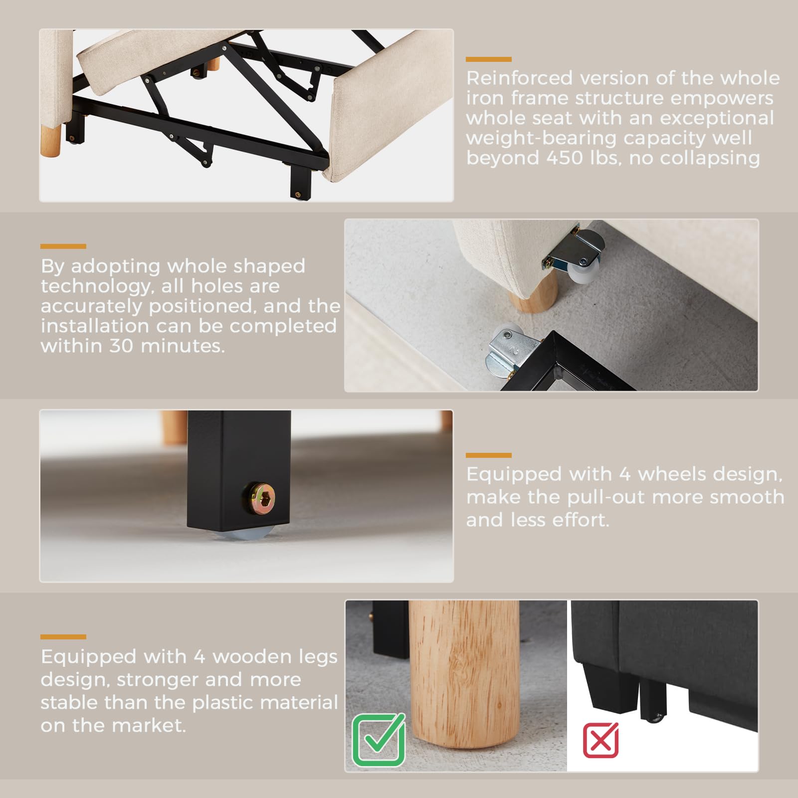 • 【Durable Frame & Safe Fabric】Made of high-quality steel frame, ensuring best durability in daily use and withstand 330 lbs. Safe and breathable fabric and high-density foam upholstery give an extra soft feeling and excellent support, and never collapse.