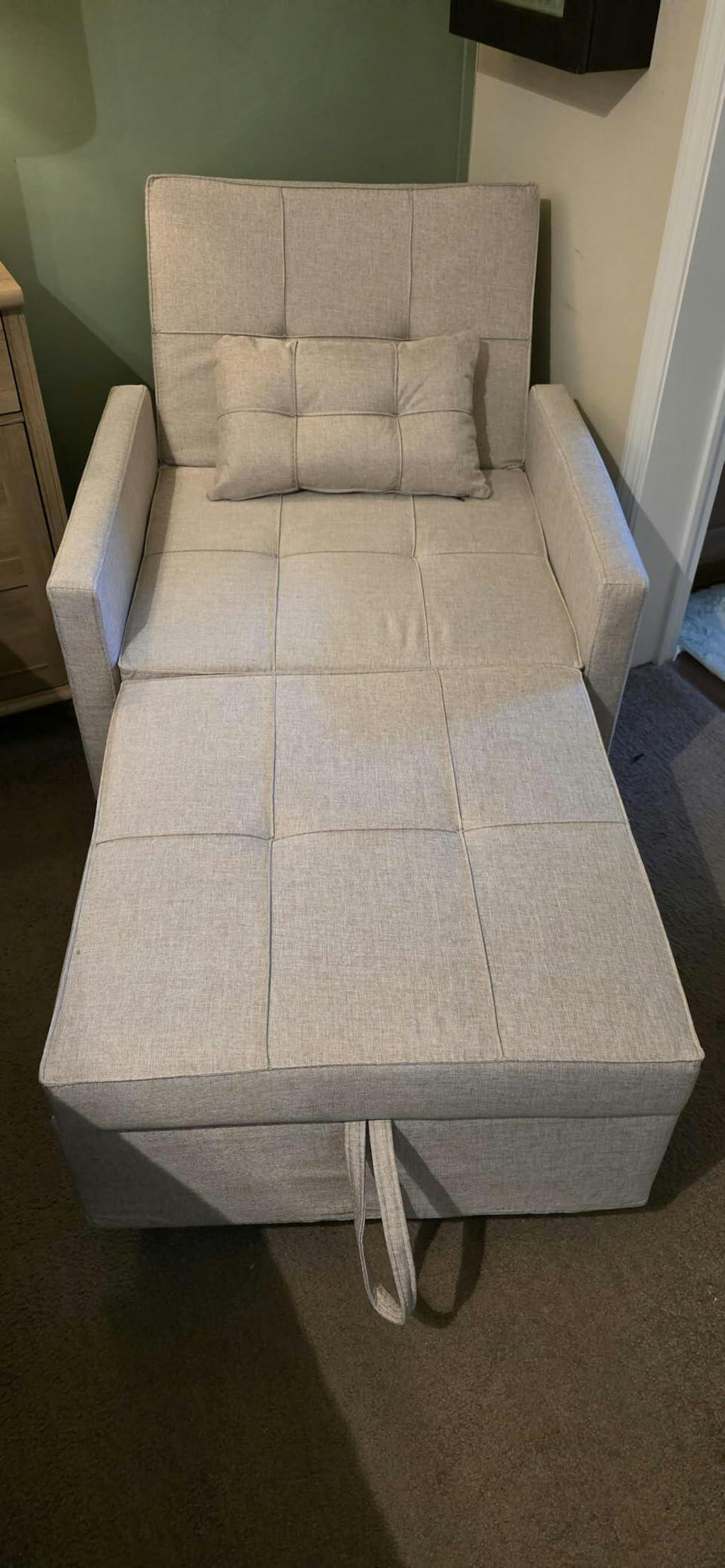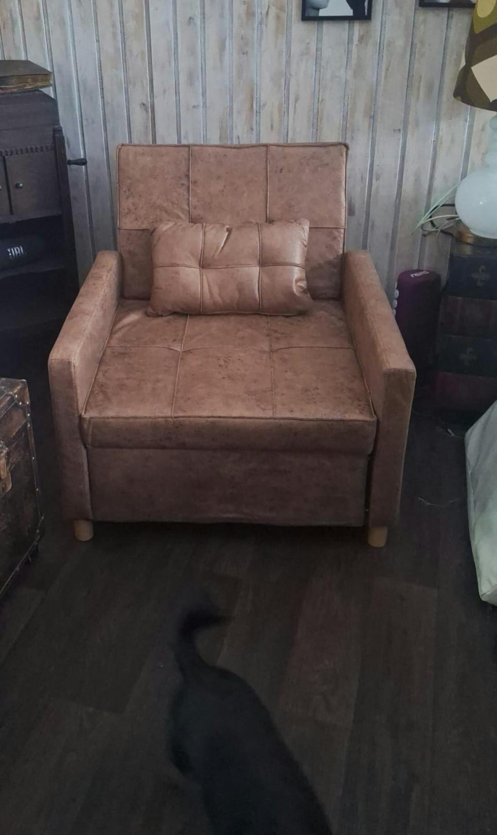 This chair turns into a bed so easily. It's comfy to sit in during the day and works great for naps or guests. Makes my space feel more versatile and cozy.