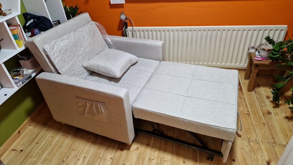 This chair bed is such a great space saver. It's super comfortable as both a chair and a bed, and the beige color blends well with my decor. Perfect for guests or naps.