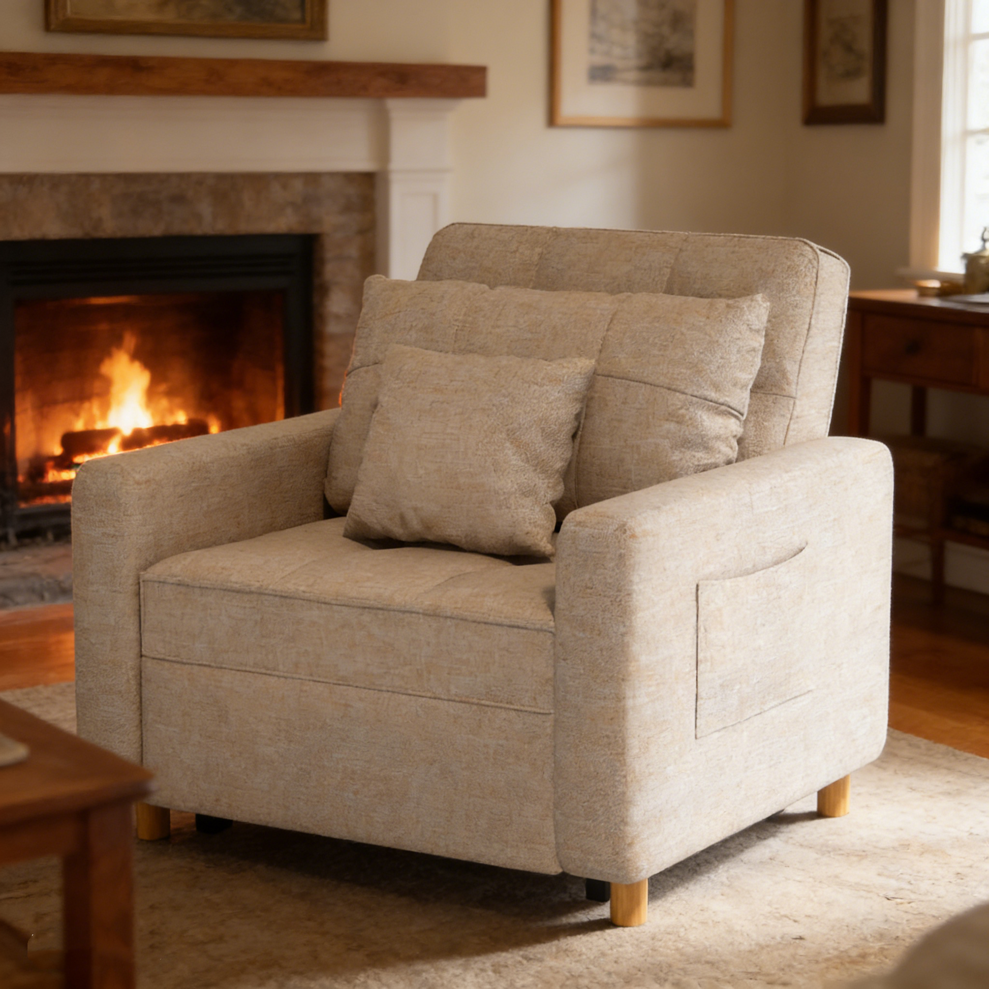YODOLLA 36" Convertible Chair Bed, Beige