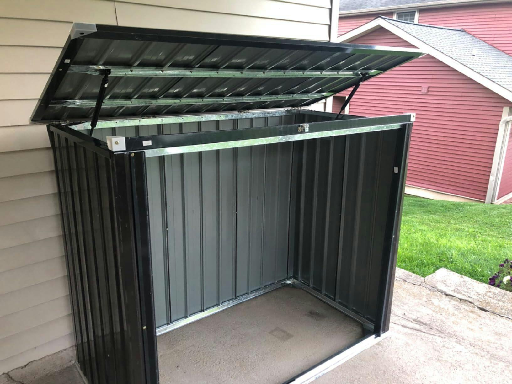 The YODOLLA 46 Cu.Ft Outdoor Horizontal Storage Shed is an ideal solution for storing garden tools and outdoor equipment. Its stylish design complements any outdoor setting.