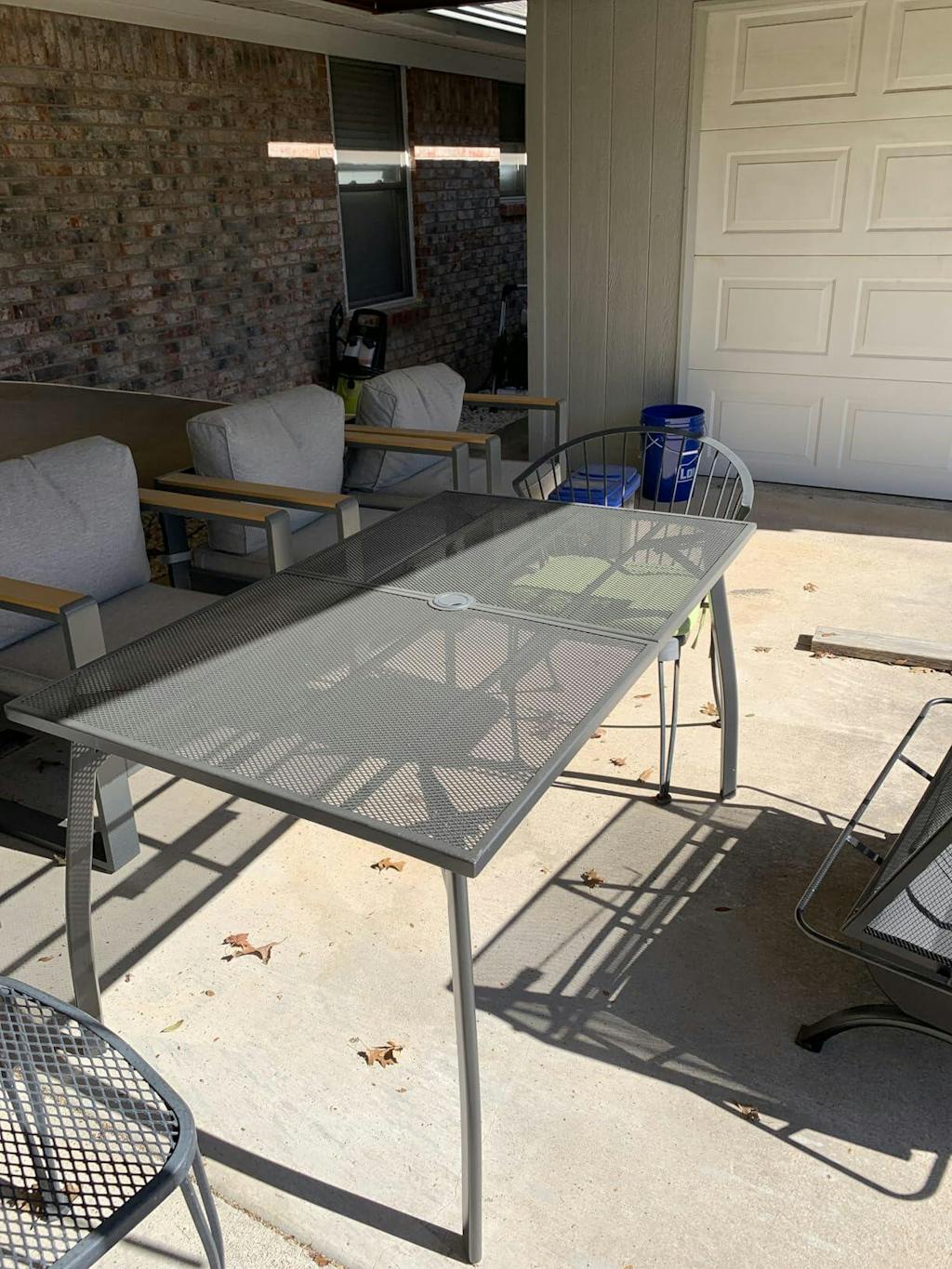 This patio table has become our go to spot for outdoor meals. It's sturdy and gives us plenty of space to eat and chat together. The umbrella hole makes it easy to add shade on sunny days.