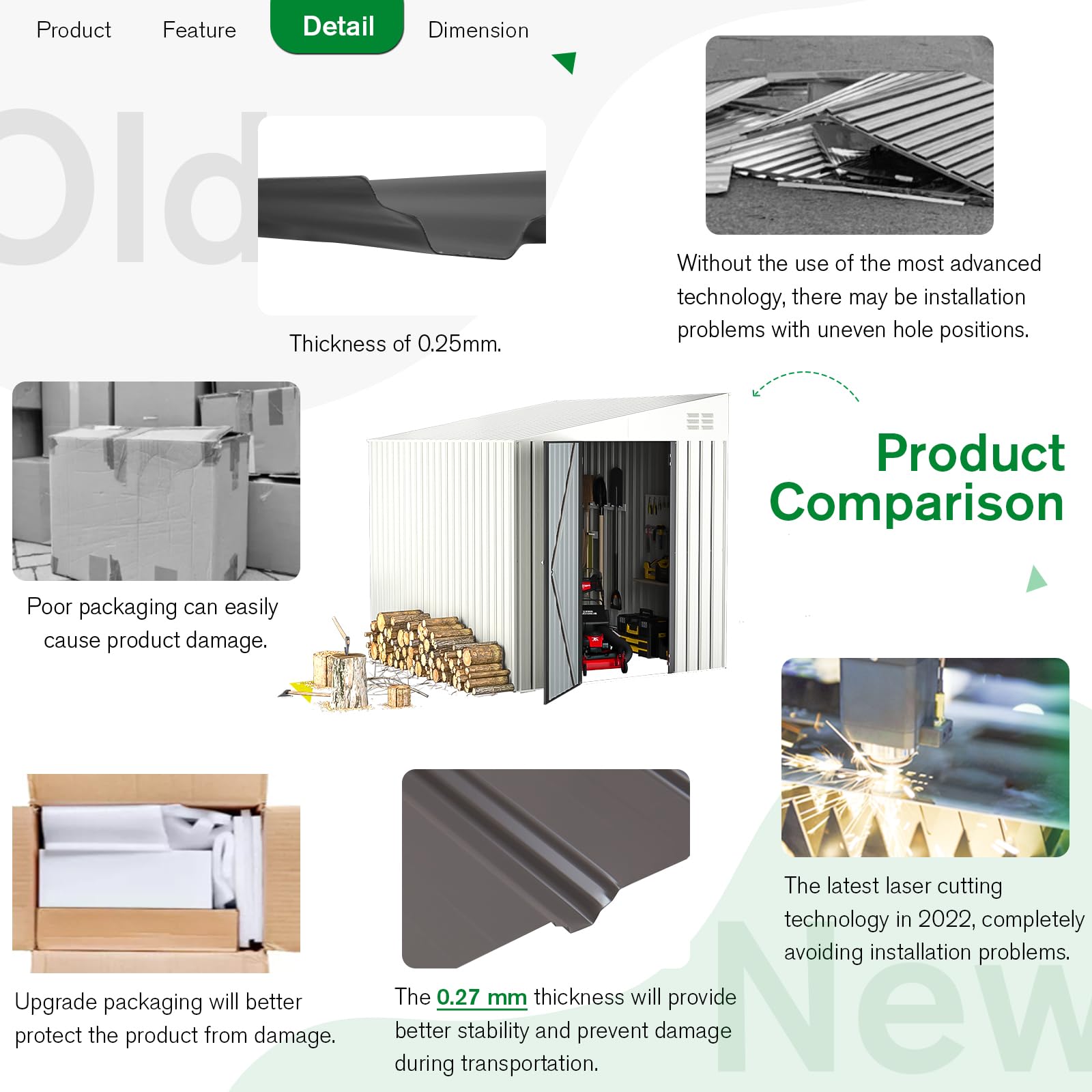 • Sturdy & Resilient: Enhancements to each metal plate elevate the shed's weight to 143 pounds, surpassing cheaper alternatives and significantly bolstering stability. Withstanding harsh weather conditions, it boasts exceptional wind resistance of approximately 70 miles per hour.