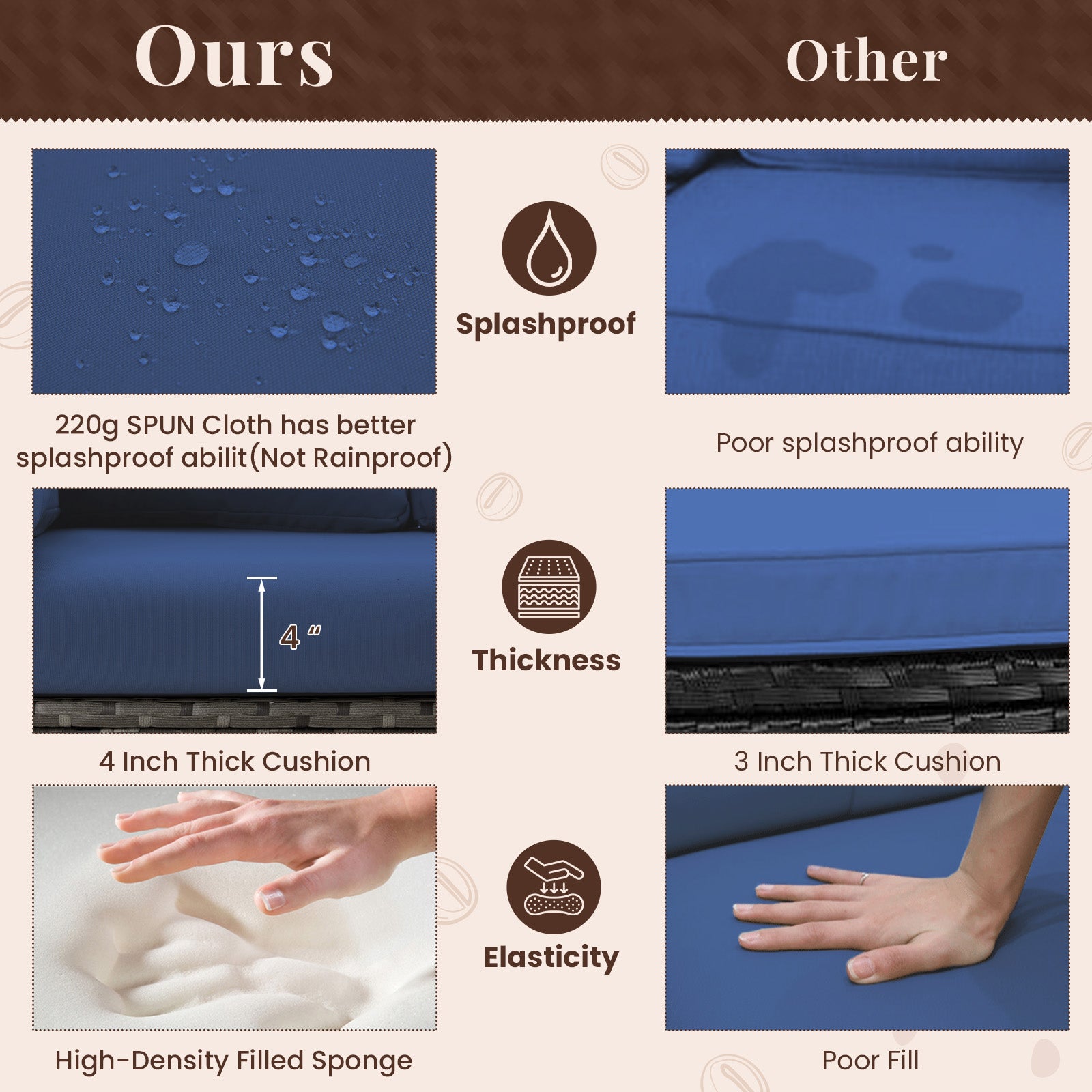 YODOLLA 7-Pc Patio Set, Grey Rattan & Blue Cushion
