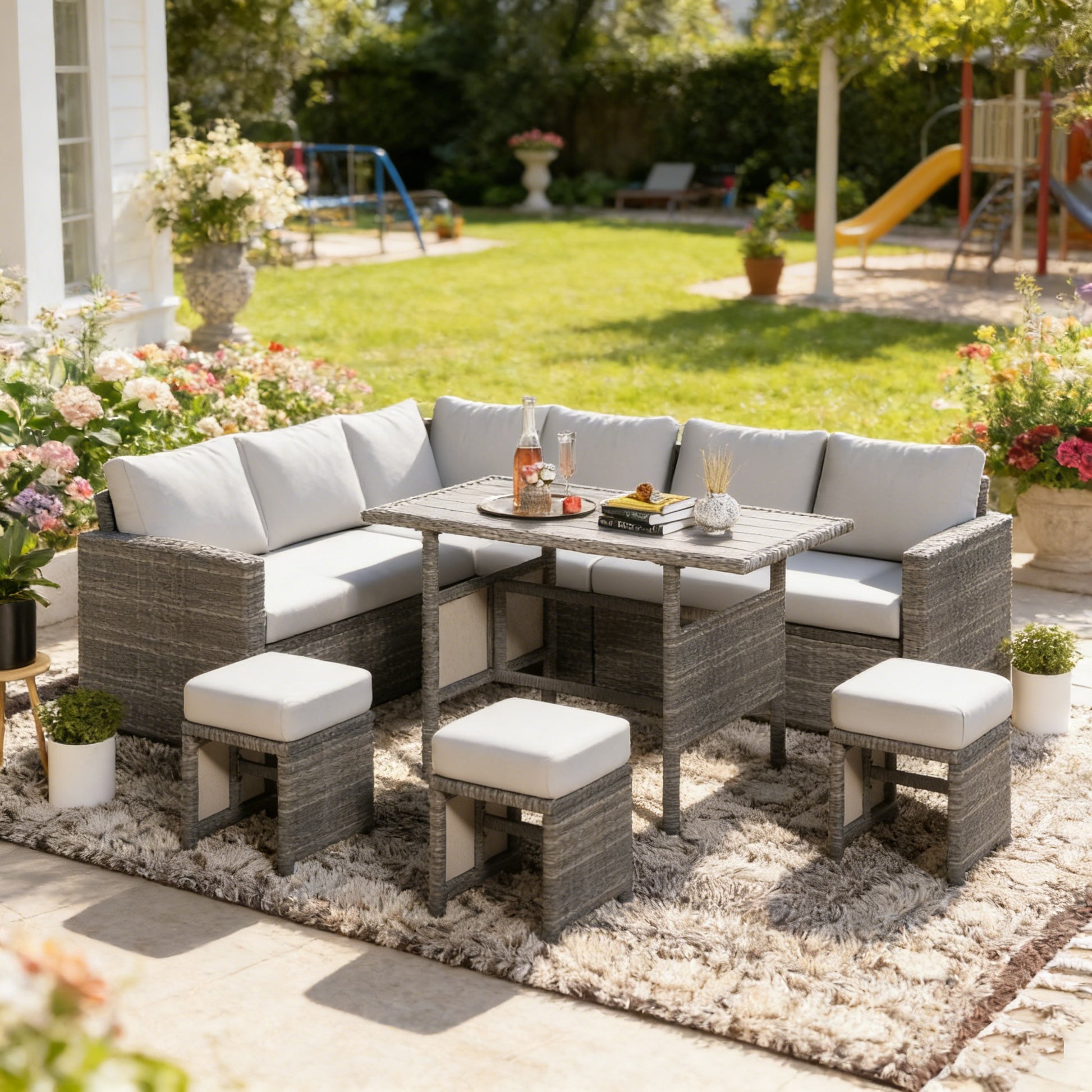 • 【What You Will Receive】We will prepare one whole set of 7 pieces patio furniture, which includes 3 corner seats, 3 ottomans and 1 high dining table and 1 fire pit table for your order. You can mix and match at will to meet your different party events.