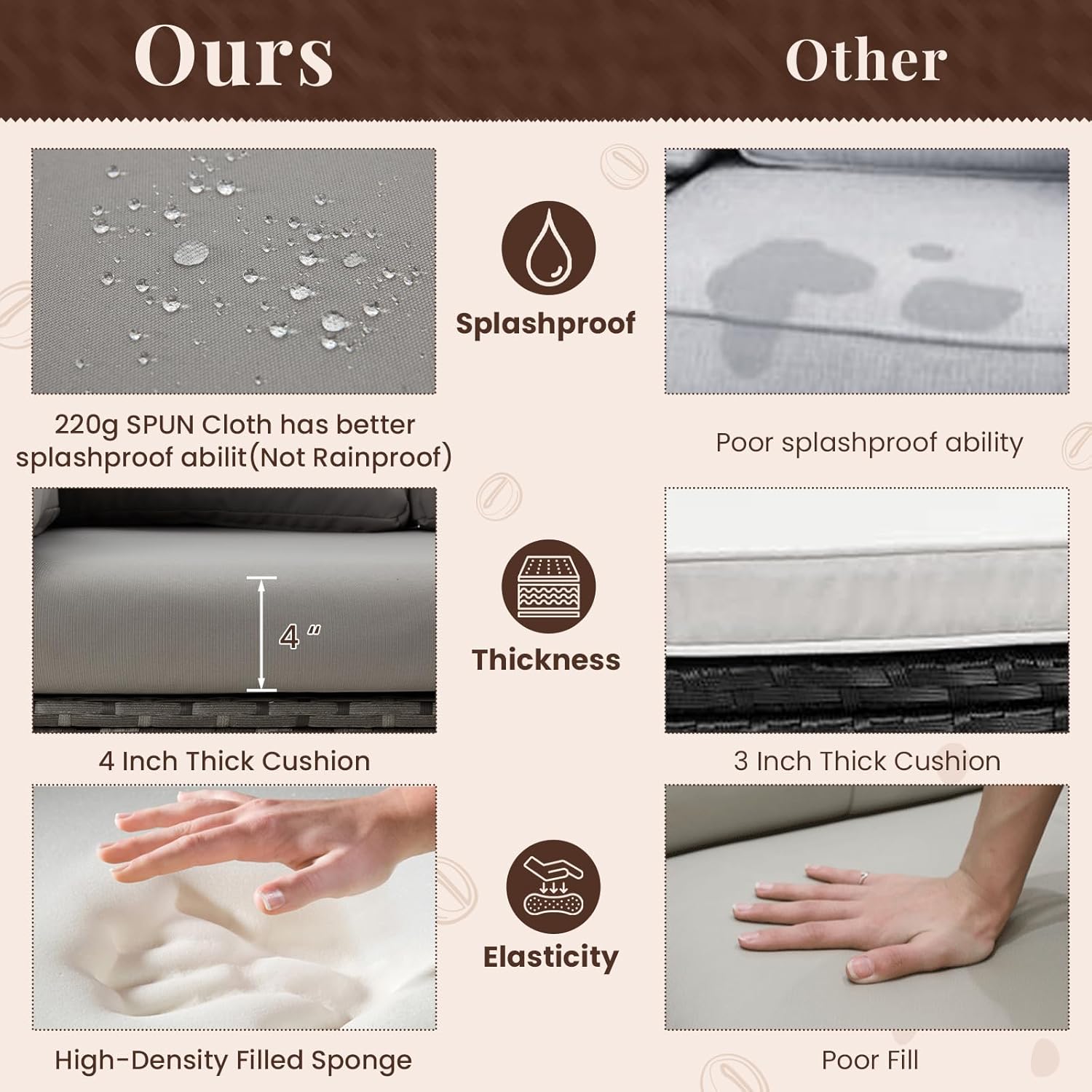 • 【Comfortable Cushions】The YODOLLA patio sofa cushion is upholstered with sponge and polypropylene cotton, thick and soft, adding extra comfort. All cushion covers are PA coated that will last for a longer time. 250 g/m polyester yarn-dyed fabric manages to resist fade in long-time sunshine conditions(Please don't expose the item into the rain).