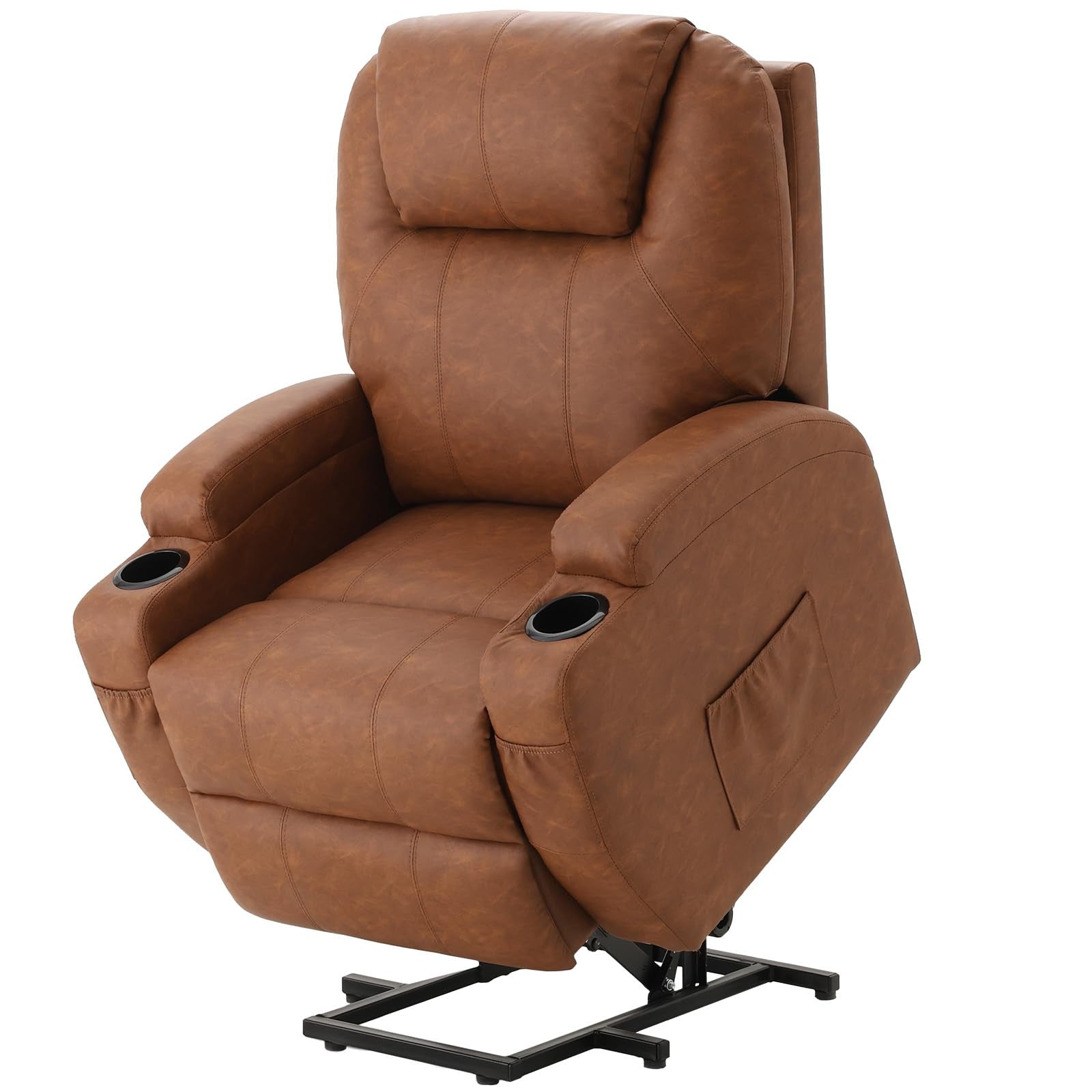 This power recliner chair features 8 vibration massage points with 5 adjustable modes and a soothing lumbar heating function. The 360° swivel base and manual recline from 90° to 160° offer effortless positioning, while the extended footrest provides full-body support. Upholstered in breathable, easy-clean PU leather with a reinforced 350-lb capacity frame, it includes convenient cup holders and a side pocket. With 5-10 minute assembly and 24/7 support, it's the ultimate relaxation solution.