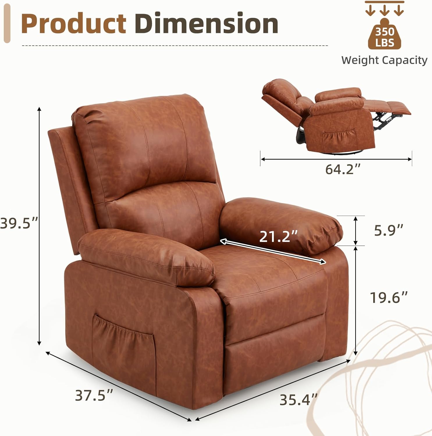 • 【Plush Comfort】This recliner chair adopts skin-friendly upgraded PU leather paired with high-resilience sponge filling—soft to the touch while maintaining long-lasting support. Its extra-thick armrests and plush padded backrest wrap your body in coziness, perfect for hours of relaxation.