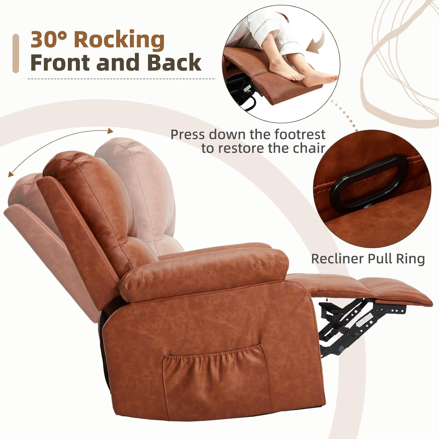 • 【Easy Assembly and 24/7 Hassle-free Support】This rocking recliner is designed with your convenience in mind. With clear, numbered assembly instructions, you can assemble it indoors in just 5-10 minutes. Should you encounter any issues, feel free to contact us—we are committed to providing the highest quality after-sales service.